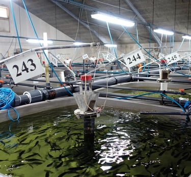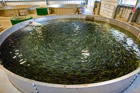Une ferme piscicole moderne intégrant les écloseries, l’alimentation et les unités de grossissement.